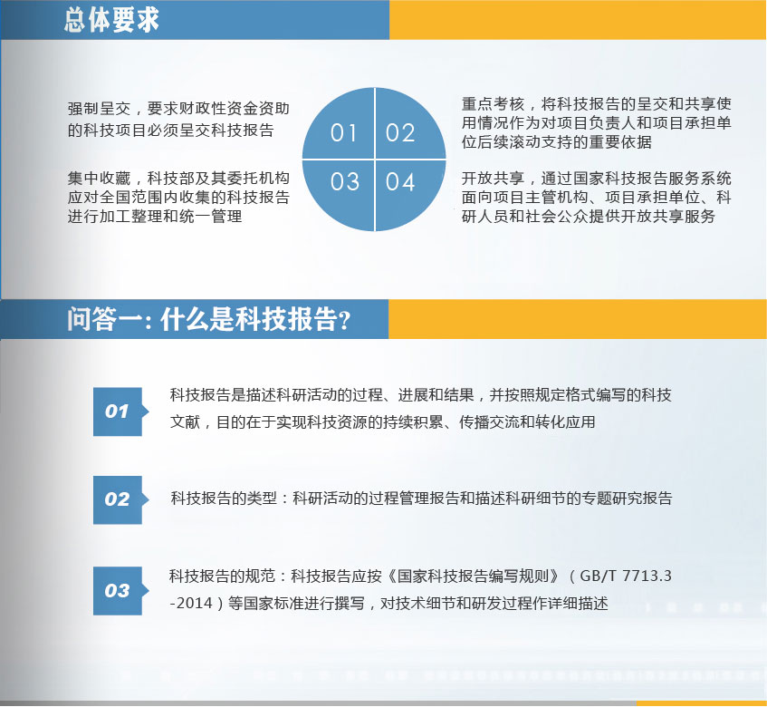 科技报告是描述科研活动的过程、进展和结果,并按照规定格式编写的科技文献,包括科研活动的过程管理报告和描述科研细节的专题研究报告。建立国家科技报告制度,将科技报告纳入科研管理,有利于加强各类科技计划协调衔接、避免科技项目重复部署,有利于广大科研人员共享科研成果、提高国家科技投入效益,有利于社会公众了解科技进展、促进科技成果转化应用。为深入实施创新驱动发展战略,推动科技成果的完整保存、持续积累、开放共享和转化应用... [进入全文]
